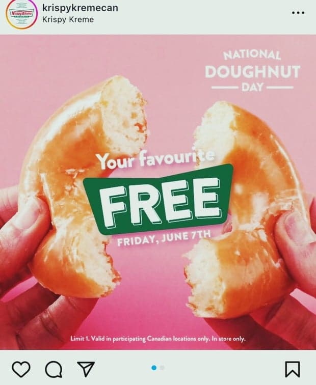 내셔널 도넛 데이가 되면, 던킨(Dunkin’), 크리스피 크림(Krispy Kreme), 팀 호튼스(Tim Hortons) 같은 대형 도넛 브랜드들은 다양한 프로모션을 진행한다. 가장 인기 있는 것은 바로 무료 도넛 제공 행사다. 대부분의 매장에서는 간단한 조건(음료 구매 등) 하에 도넛을 무료로 제공하고, 어떤 곳은 줄 서기만 해도 도넛을 나눠준다. 일부 지역에서는 도넛 먹기 대회, 도넛 테마 의상 콘테스트, 어린이 체험 이벤트 같은 특별한 행사도 함께 열린다. 사회복지단체와 협력하여 지역 커뮤니티에 도넛을 기부하거나 병원, 경찰서, 소방서 등에 전달하는 활동도 활발하게 진행된다. 또한 SNS에서는 사람들이 직접 만든 도넛 사진을 올리거나, **“내 생애 최고의 도넛”**을 공유하며 전국적인 온라인 축제를 이어간다. 내셔널 도넛 데이는 단순한 ‘먹는 날’을 넘어서, 사람들과 나눔과 감사의 마음을 전하는 따뜻한 문화의 날로 자리매김했다.